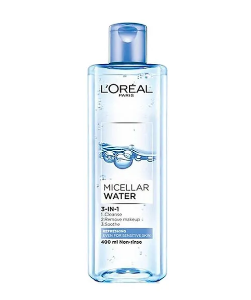 Nước tẩy trang Loreal Micellar Water 3 in 1 có thàng phần Refreshing – Tươi mát (xanh dương nhạt): Nhờ thành phần Nước khoáng lấy từ những ngọn núi ở Pháp, làn da trông tươi tắn lên sau khi tẩy trang.